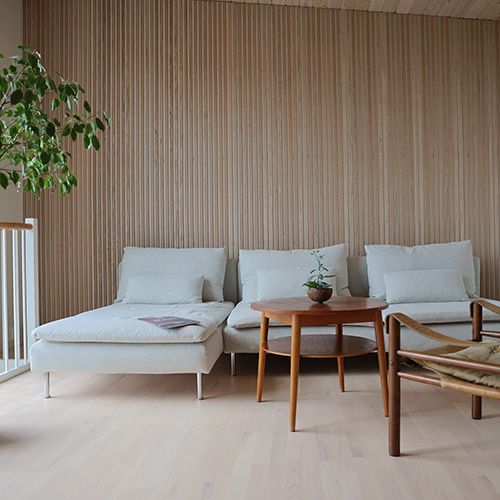 Transform your living room into a serene and stylish space with our Danish-designed acoustic panels. Made from natural oak slats combined with white felt, these panels don’t just look stunning—they significantly improve your room’s acoustics by absorbing unwanted noise.