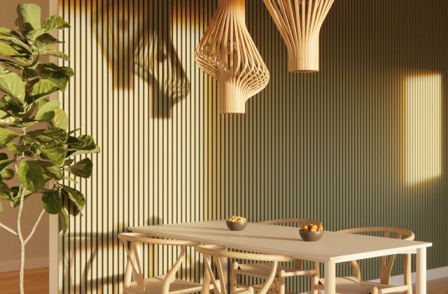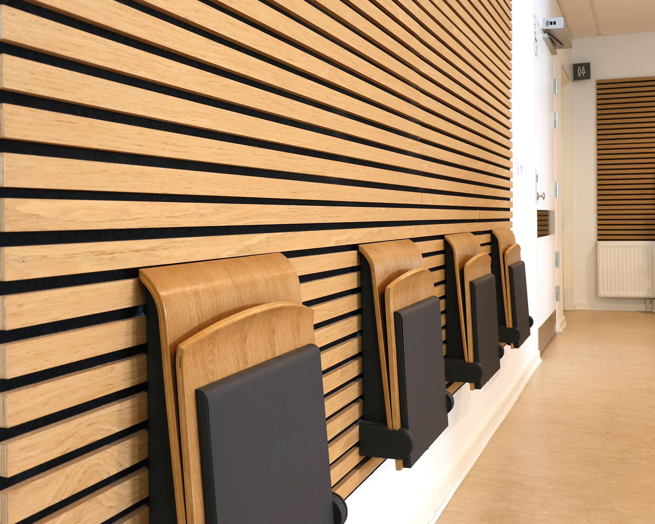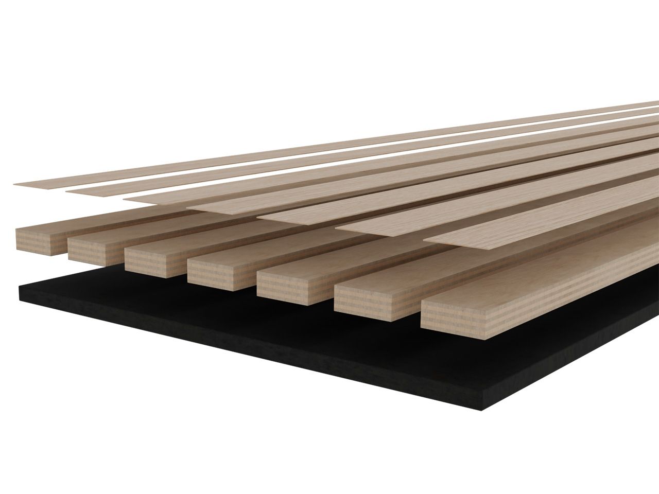 Our FR slats are produced from plywood. The more angles sound has to pass through, the more it is reduced. The structure and placement of the slat on the board cause the sound waves to break before they hit the board, further enhancing the reduction.