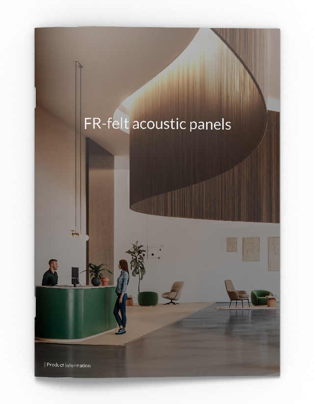 Our specially developed FR (Fire Retardant) acoustic panel, which is fire-rated, allows all players in the construction industry to optimize acoustics while simultaneously enhancing the interior design and visual appearance of the room.