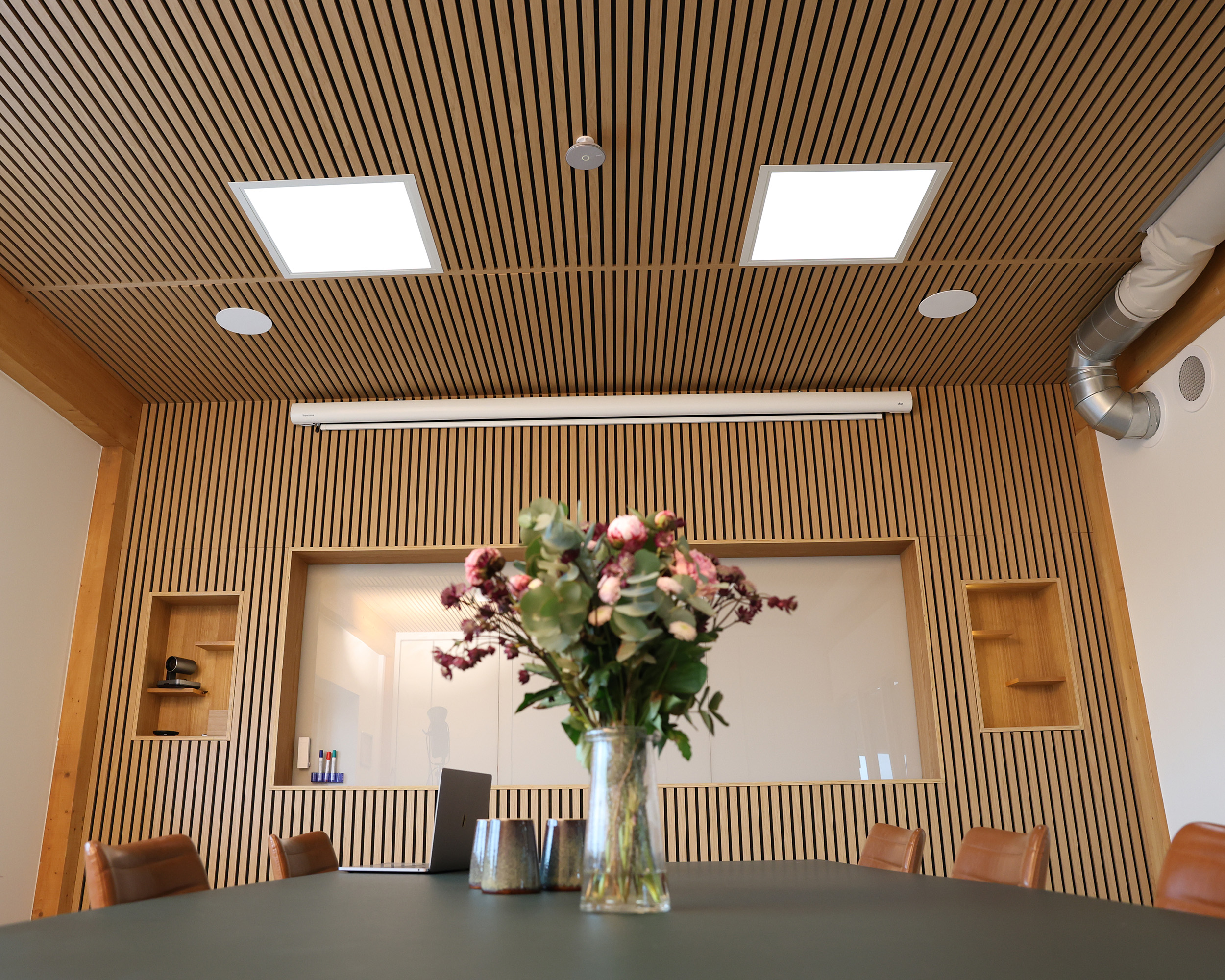The veneer, or surface of the slat, is the final finish that defines our acoustic panels. Along with the rest of the panel, the veneer contributes to both matching and creating contrast with the rest of the interior.